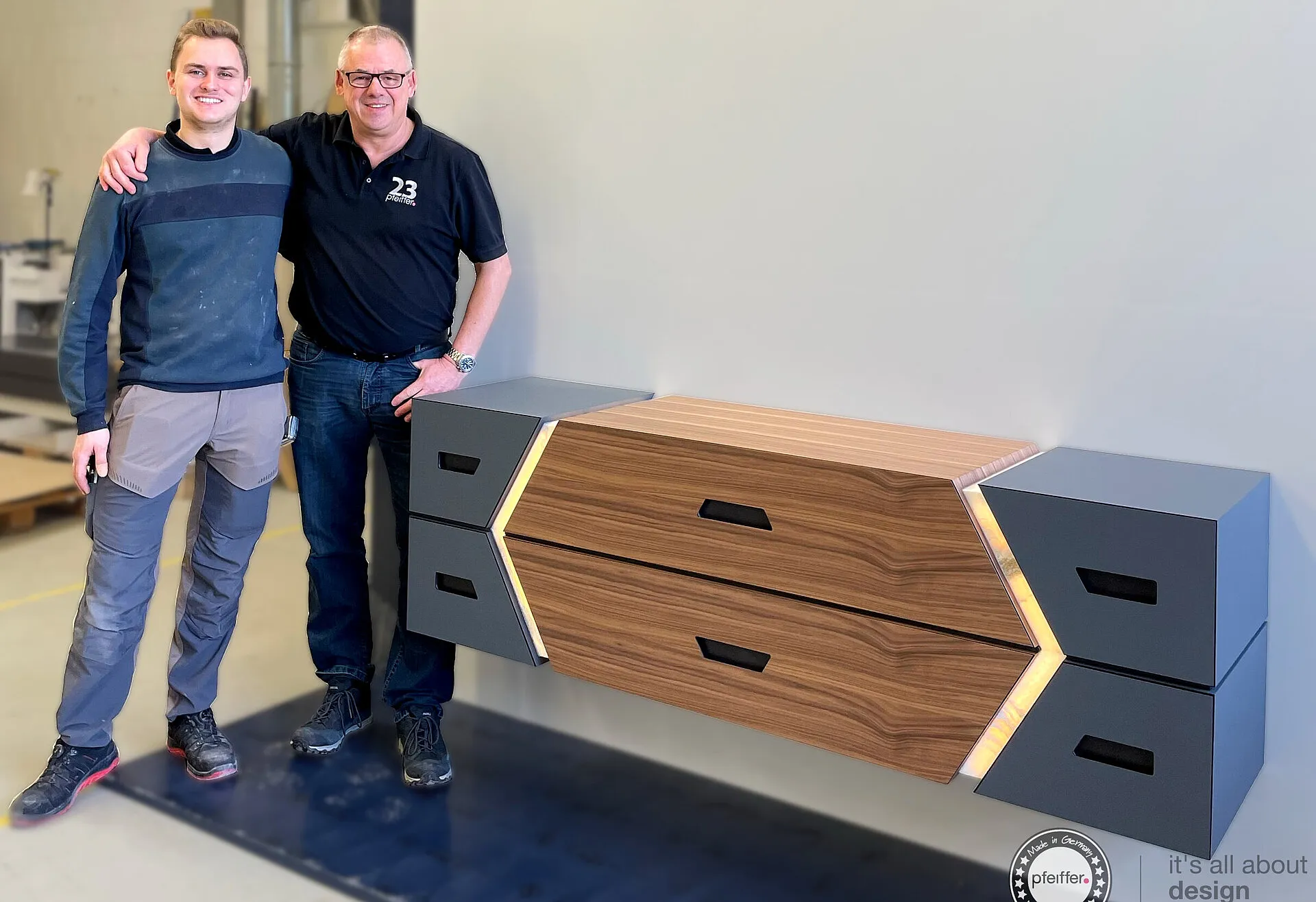 Pfeiffer ist ein familiengeführtes Unternehmen aus Aßlar in Mittelhessen. 1923 als Möbeltischlerei gegründet, planen, fertigen und montieren wir heute maßgeschneiderte Küchen, Bäder, Wohn- und Objekteinrichtungen – von der ersten Idee bis zur letzten Schraube.