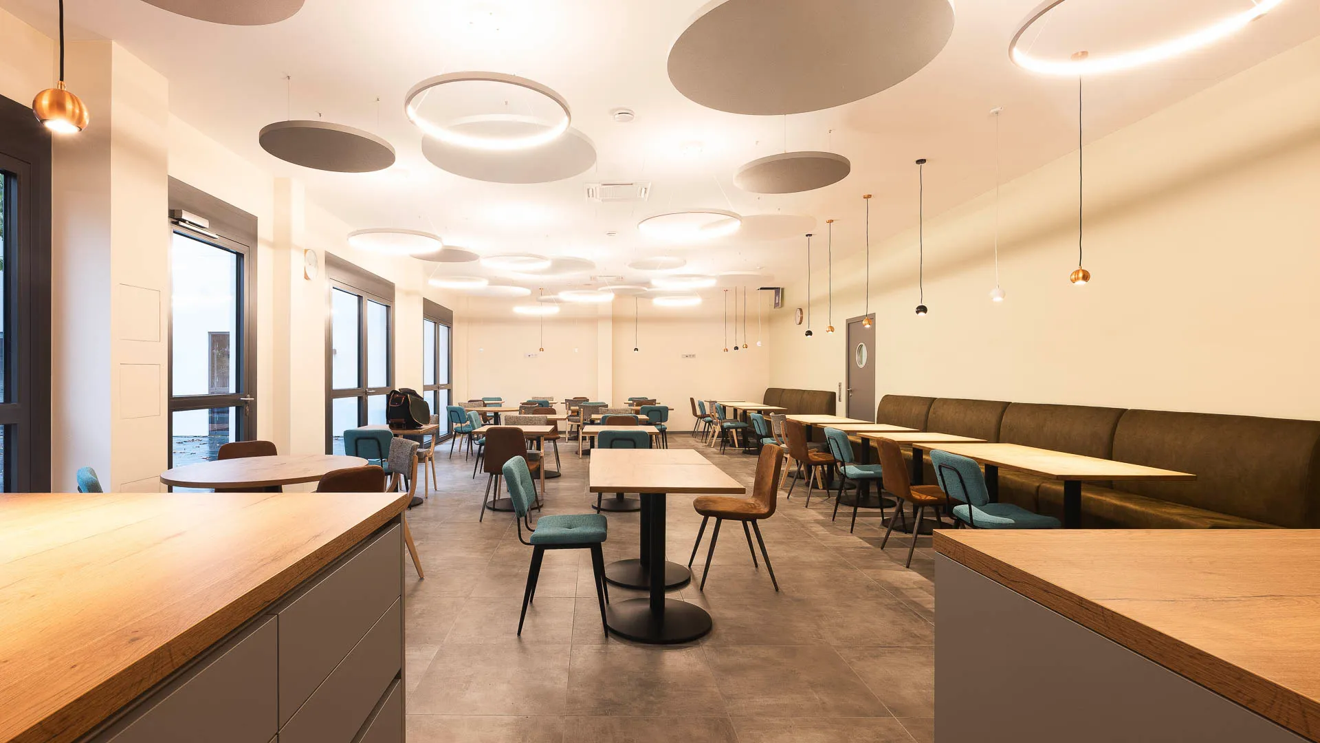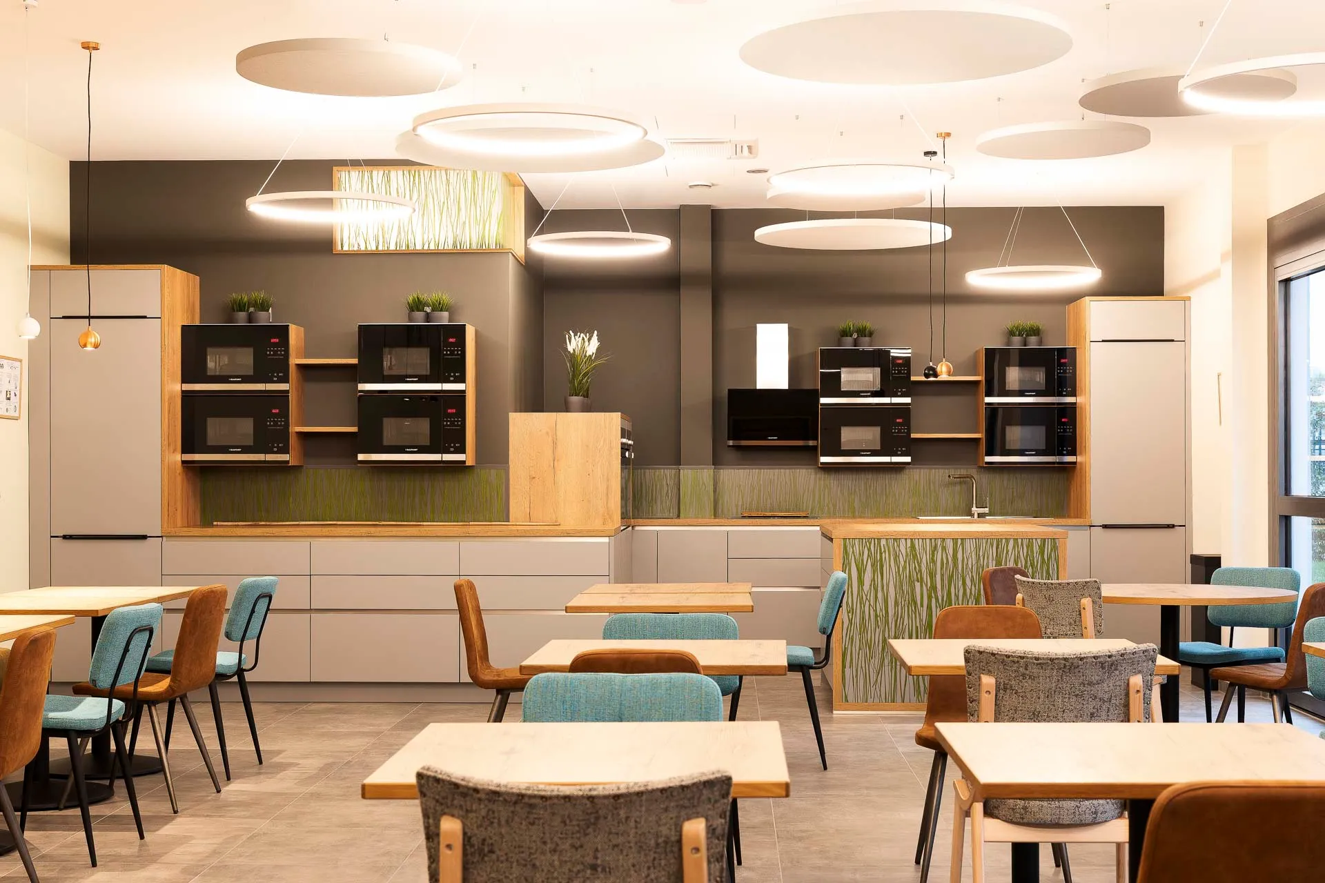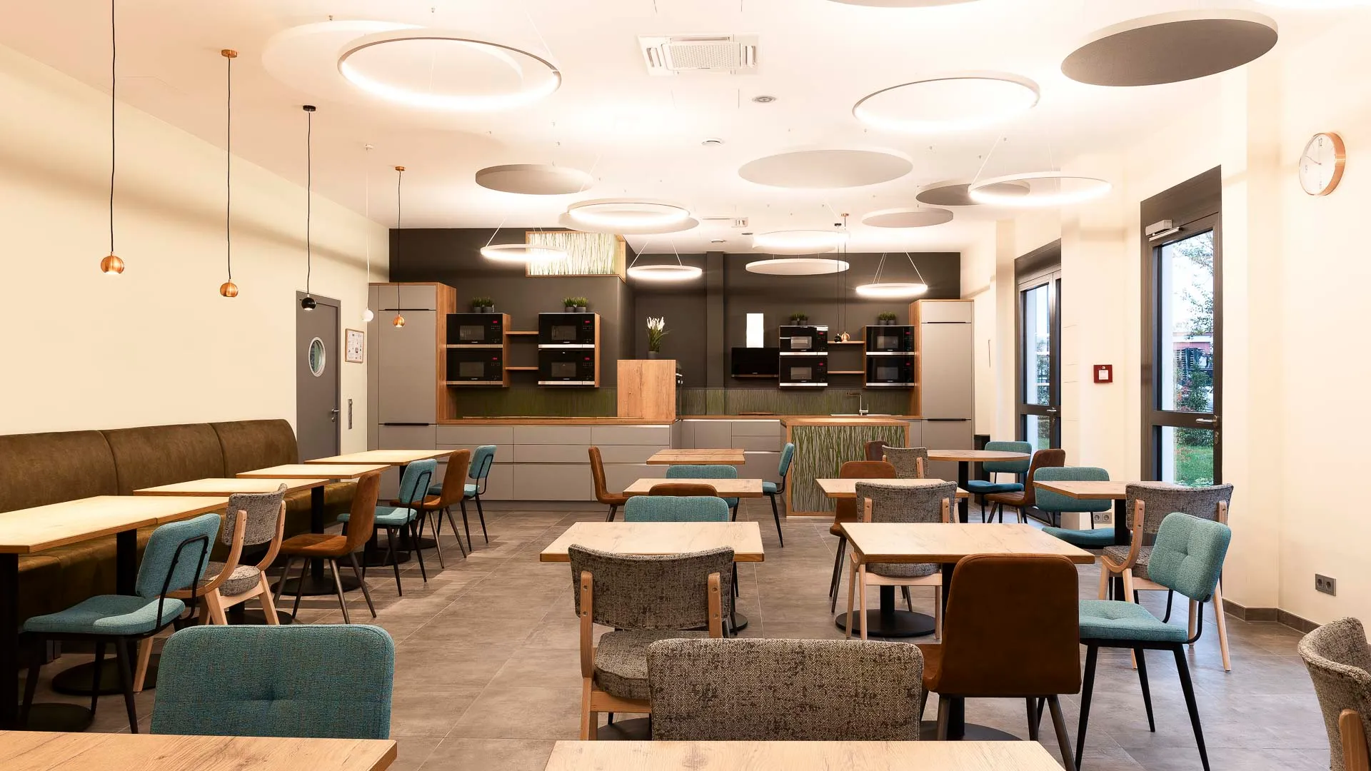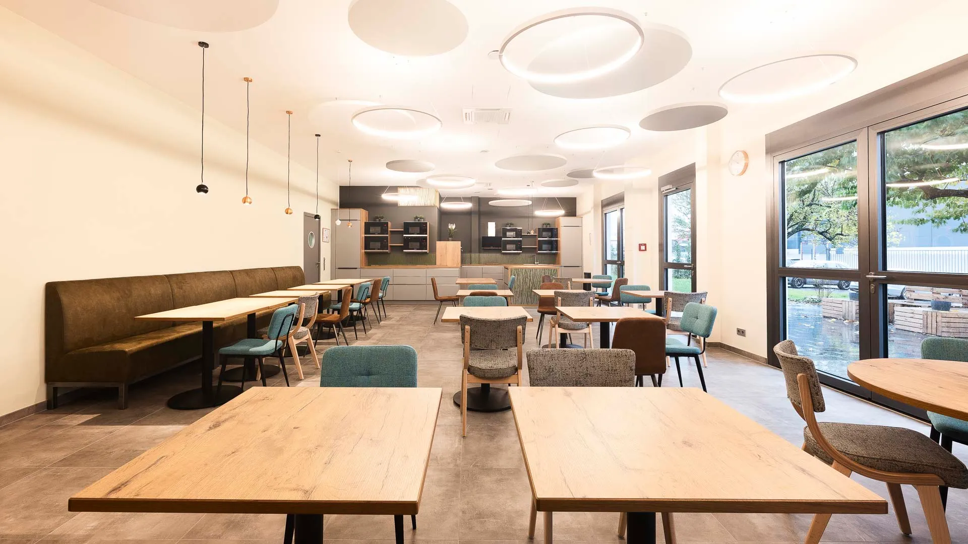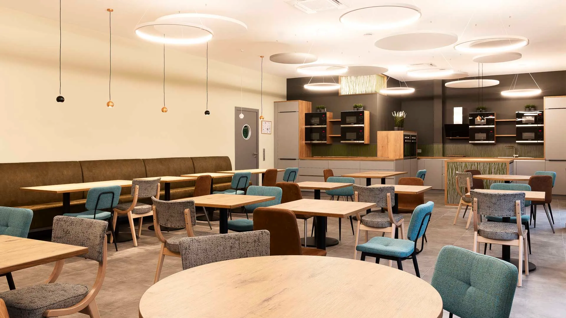 Neugestaltung der Teamlounge mit offener Küche zur multifunktionalen Nutzung. Ruhepausen sind hier nicht nur erlaubt – sie sind ausdrücklich erwünscht. Das Unternehmen legt großen Wert darauf, dass Mitarbeitende ihre Pausenräume nutzen und sich bewusst Zeit für Erholung nehmen. Denn nur in einem Umfeld, das das Bedürfnis nach Ruhe und sozialen Kontakten respektiert, können Pausen wirklich zur Regeneration beitragen. Eine wertschätzende Pausenkultur stärkt das Wohlbefinden und fördert ein positives Miteinander.