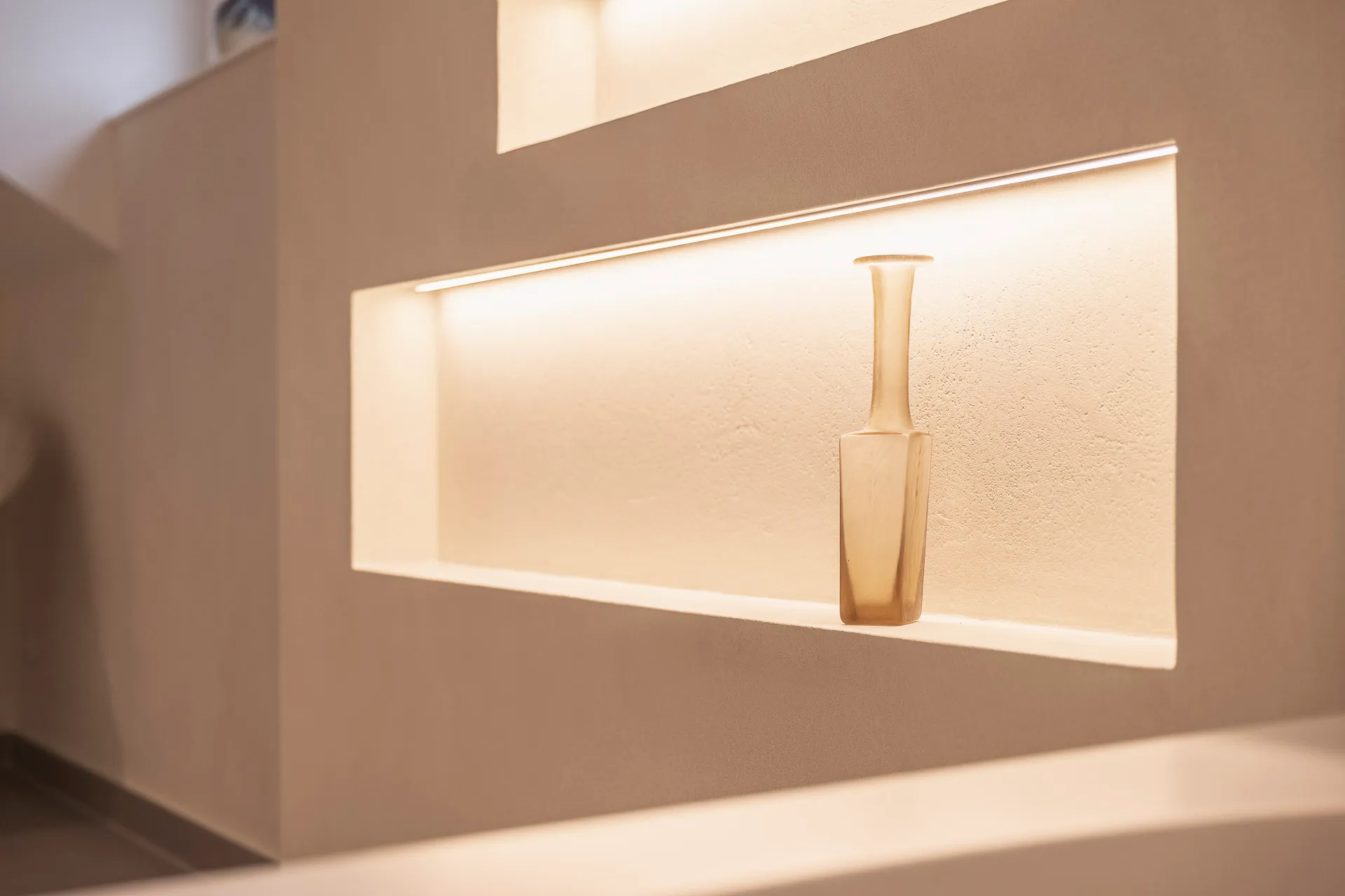 Im Rahmen einer Sanierung wurde dieses Badezimmer von unseren Innenarchitekt:innen neu gestaltet. Der Doppelwaschtisch aus Corian® in Glacier White und die XXL-Dusche mit fugenloser Rückwand zeigen die gestalterischen und funktionalen Vorteile des Mineralwerkstoffs. Eine freistehende Badewanne und die großzügige Raumaufteilung runden das klare Gesamtbild ab.